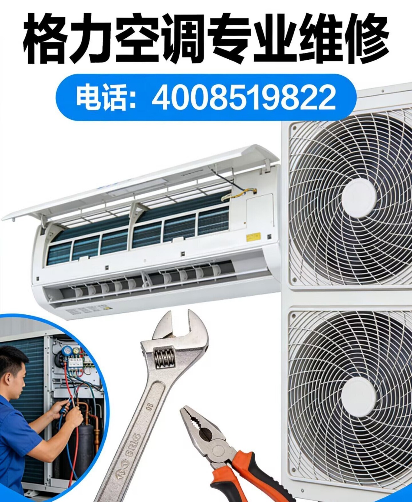 ✅ 挂机/柜机/中央空调全系列可修安心维修,还原舒适温度。格力空调专修|快速上门不制冷|漏水|异响|跳闸|不通电技术到位,价格透明,修好有保障